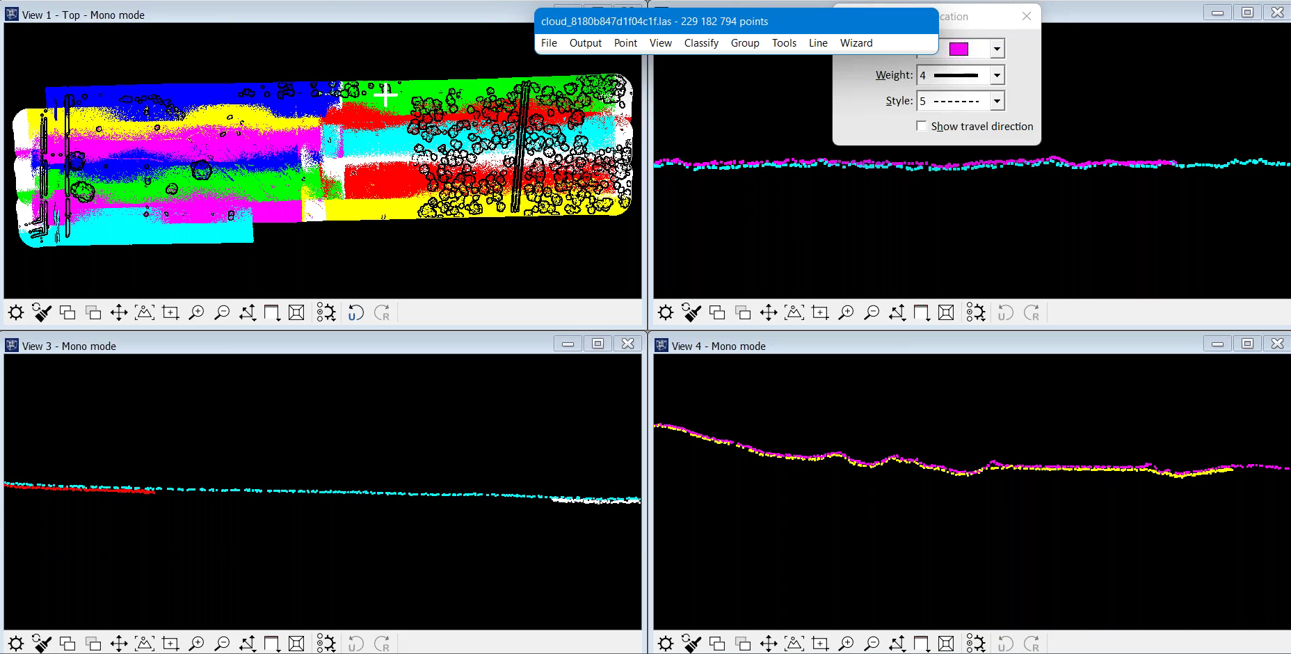When working in Terrasolid, both the TerraScan and TerraMatch licences are required for doing automatic strip alignment, combining the TerraScan wizard for processing drone data and TerraMatch's new automated wizard for conducting automatic flight-pass matching.