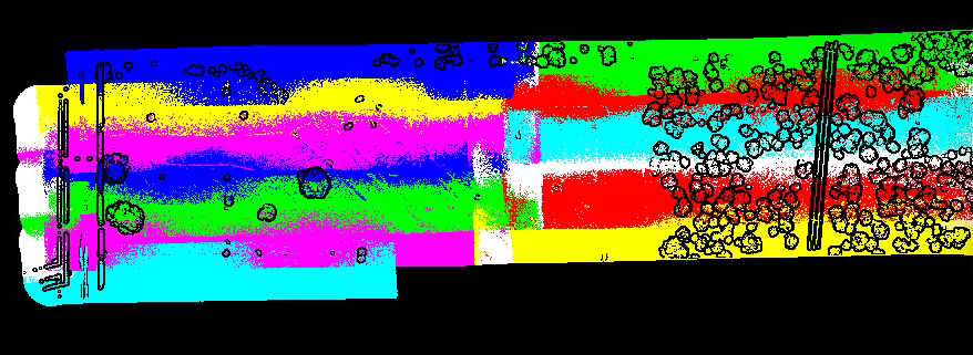 Because no flight matching has been conducted, there are numerous mismatches between flight passes. This is observed in the above image: Notice how the strips of colour aren't uniform.