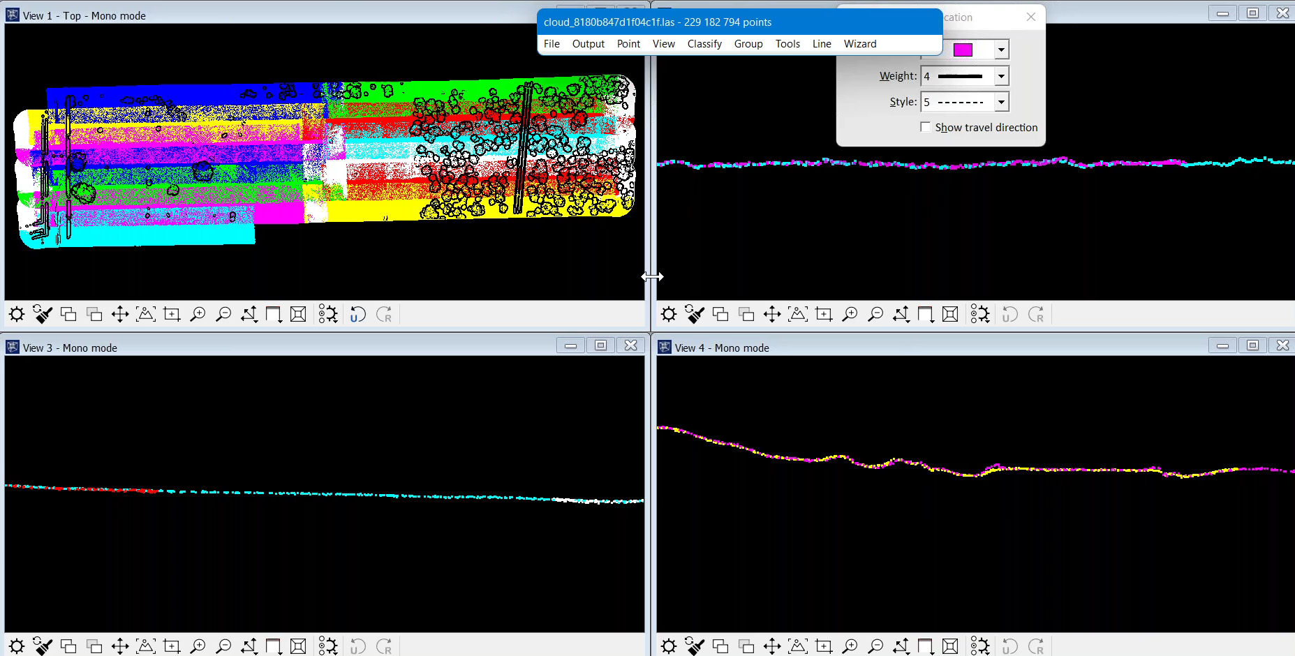 Because of this, we can expect to see some differences in the point cloud from the different flight passes. This will be shown later in the blog.