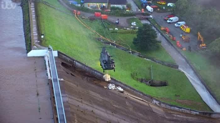 To help sure-up the dam, large bags of aggregate were flown in by RAF Chinooks and dropped into the damaged section. The drone was able to check where the bags were dropped and look for any breaches, and provide instant, real-time information.