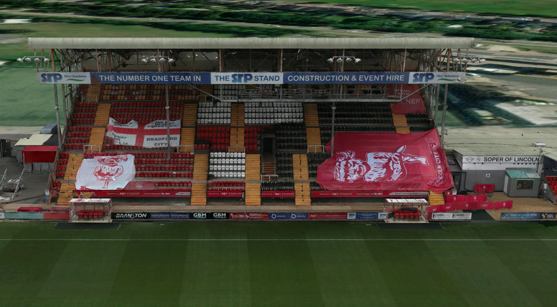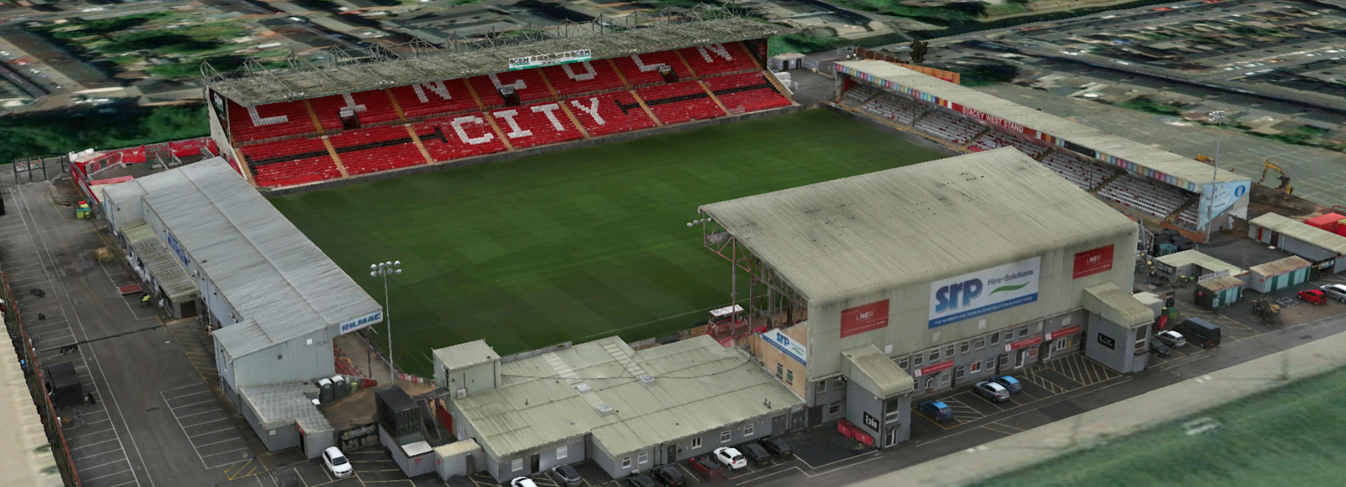 View interactive drone 3D model of Lincoln City's LNER Stadium;