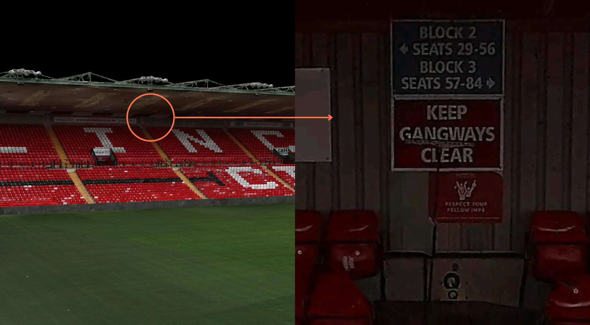 And in this example, the stairs and seats are more complete in the stand where manual imagery was captured...