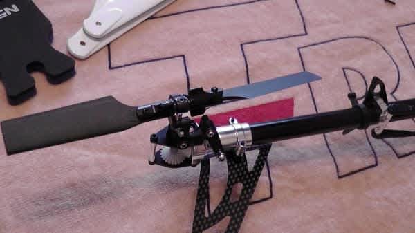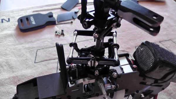 The 450 Pro goes together very well, with very little deviation from the manual. To that point, the manual itself is very good, clear computer sketches of the build process. The manual also serves as a good reference for any adjustments the owner needs to do during the lifetime of the helicopter. It also covers the setup clearly of the ESC and gyro. Initially we start with the head. Again this is pre built mostly. But it is wise to go over each screw and make sure loctite has been applied and the screw is firmly tightened. The main points to consider at this stage are getting the flybar positioned correctly, so we have an equal amount of length on both sides of the head. Also, when screwing on the paddles, making sure that they are set to an equal distance as there counterpart on the opposite side. Otherwise vibrations may be evident leading to flight control issues. All of the control arms except for the upper mixers to swashplate are of fixed length and solid plastic. This removes any potential errors in measurements, and leads to a more accurate and pain free setup procedure later on.