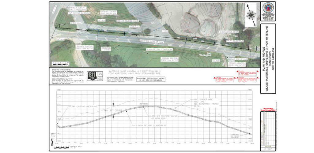 Topographic survey for a new waterline installation, benefiting from the drone's rapid data acquisition, including 3D data sets.