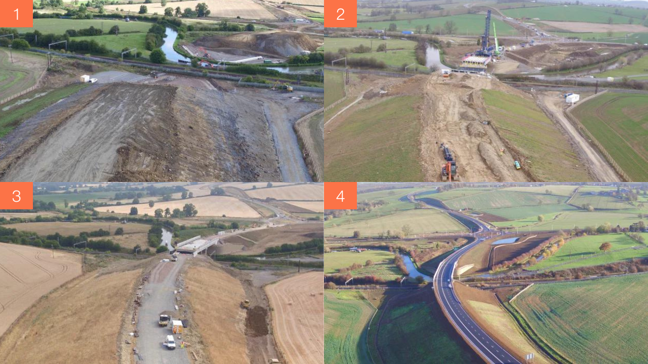 Take this sequence of images for example, taken from the Balfour Beatty scheme to construct the A45 Daventry development link road, in Northamptonshire. The pictures show how a drone can be used to monitor and record site progress over a period of time.