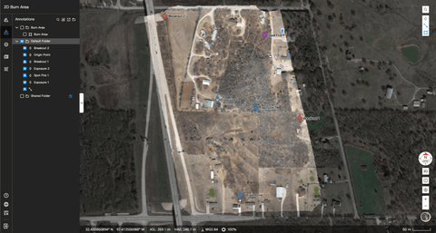The 2D Cloud Mapping feature within FlightHub 2 created an orthomosaic map of the fire and the laser rangefinder was then put to work to drop PinPoints on precise coordinates.