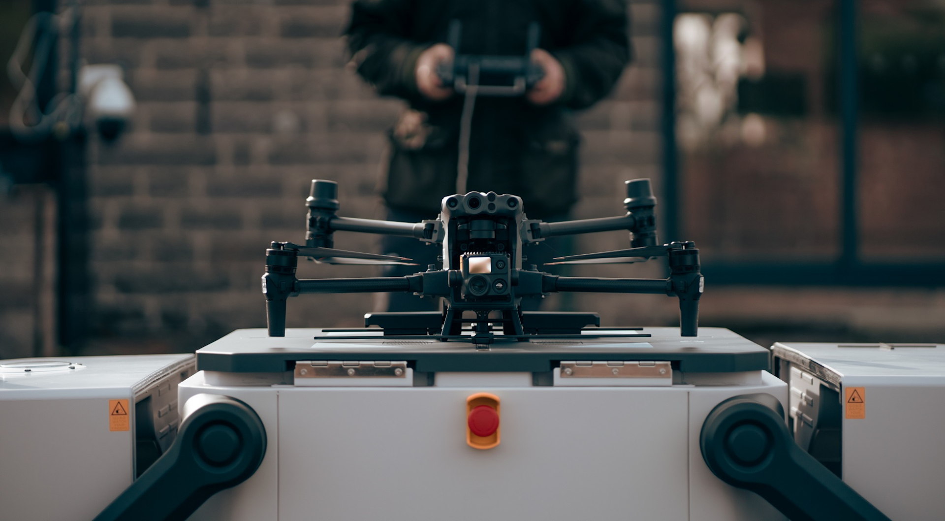 The DJI Dock is a drone-in-a-box solution which enables remote monitoring, automated flights, and round-the-clock data collection.