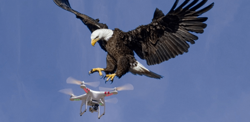 The birds do this by latching on to the propellers with their talons, instantly disabling them.