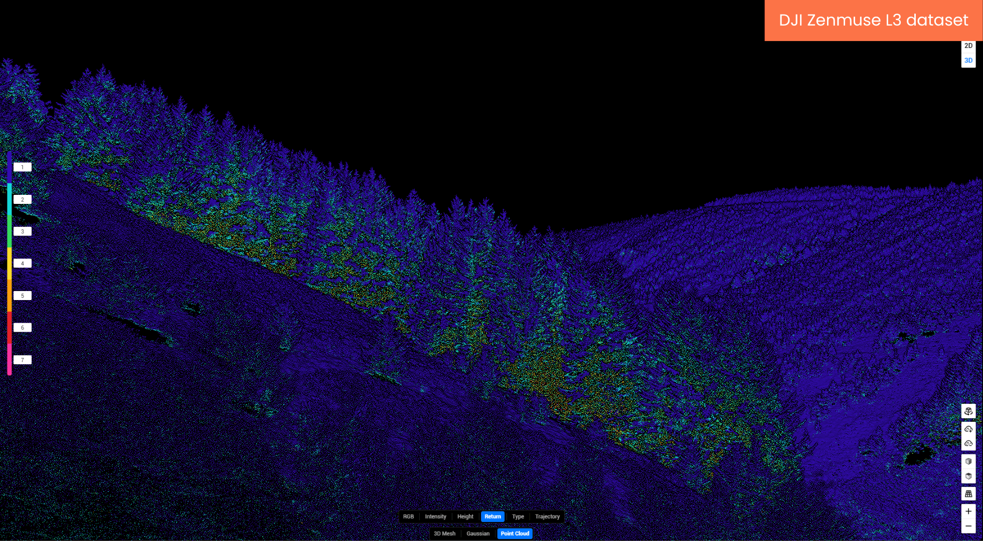 The Zenmuse L3 can capture up to 16 returns per laser pulse, dramatically increasing data richness.