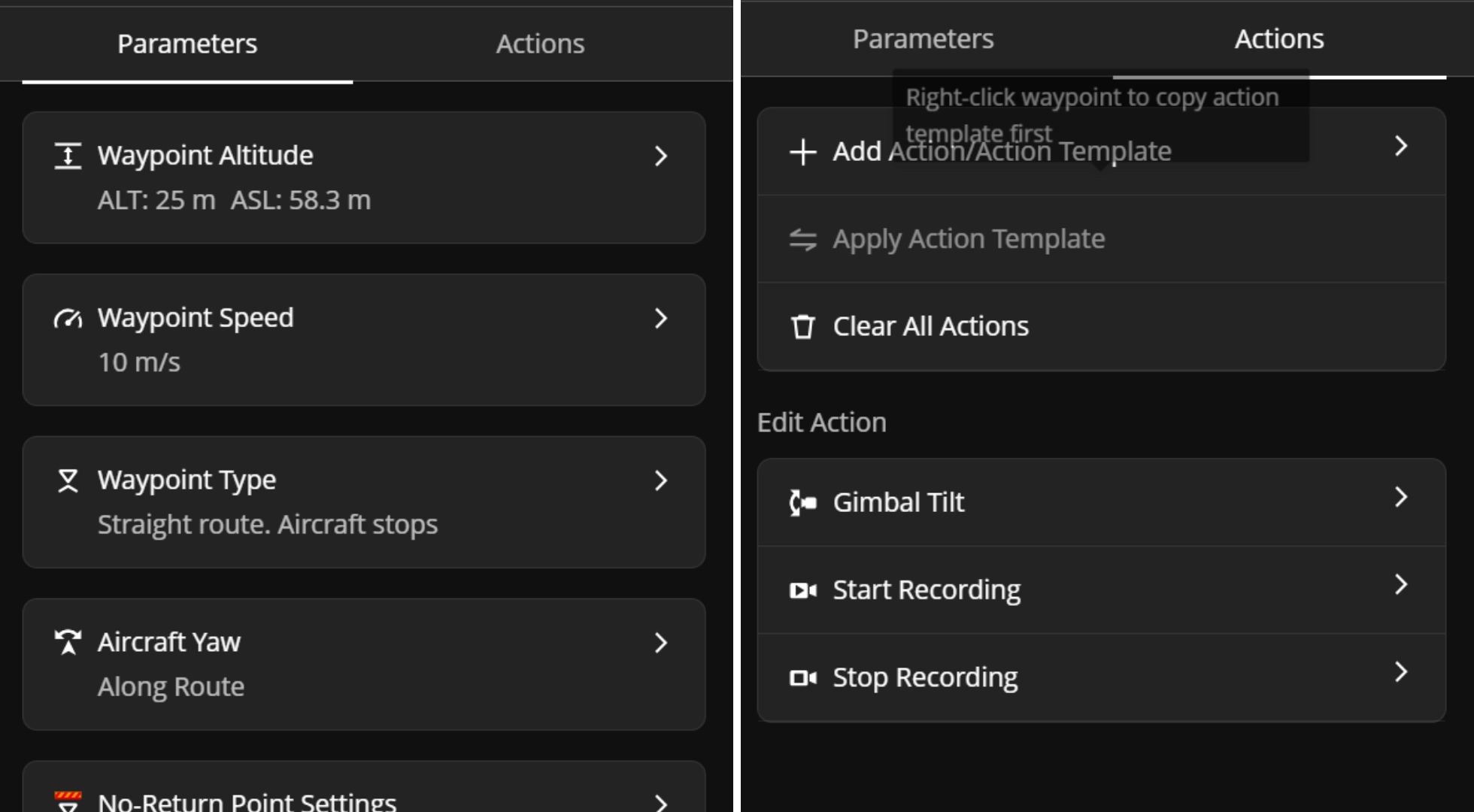 Batch Editing Waypoint Routes saves time by enabling multiple waypoints to be modified at once. Operators can now adjust waypoint parameters and actions simultaneously in the Flight Route Editor.
