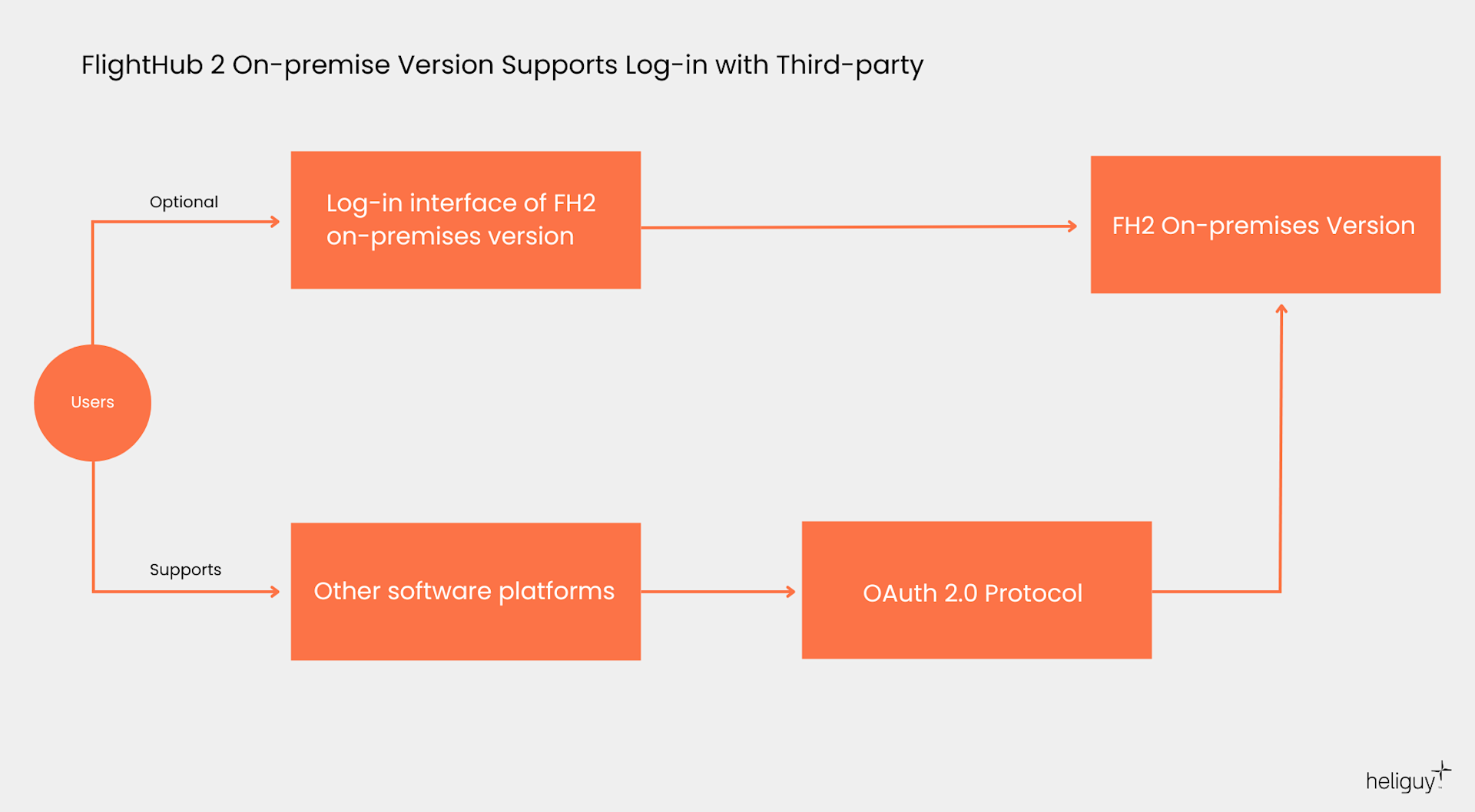For further data security protocols and to help centralise user management, DJI FlightHub 2 On-premises supports third-party account log-in - but this account system must support OAuth 2.0 standard protocols.