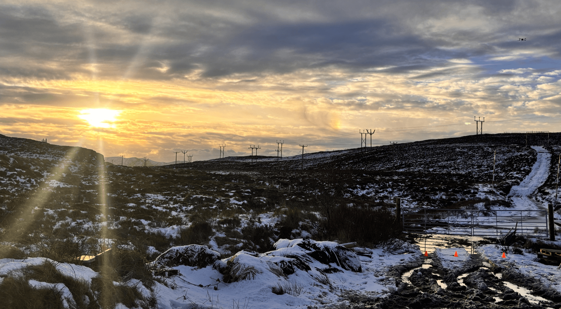 Challenge: Deep peat (83% of work zones), fragile habitats, protected species, restricted access, and environmental constraints that make traditional rope-running methods high-risk and disruptive.