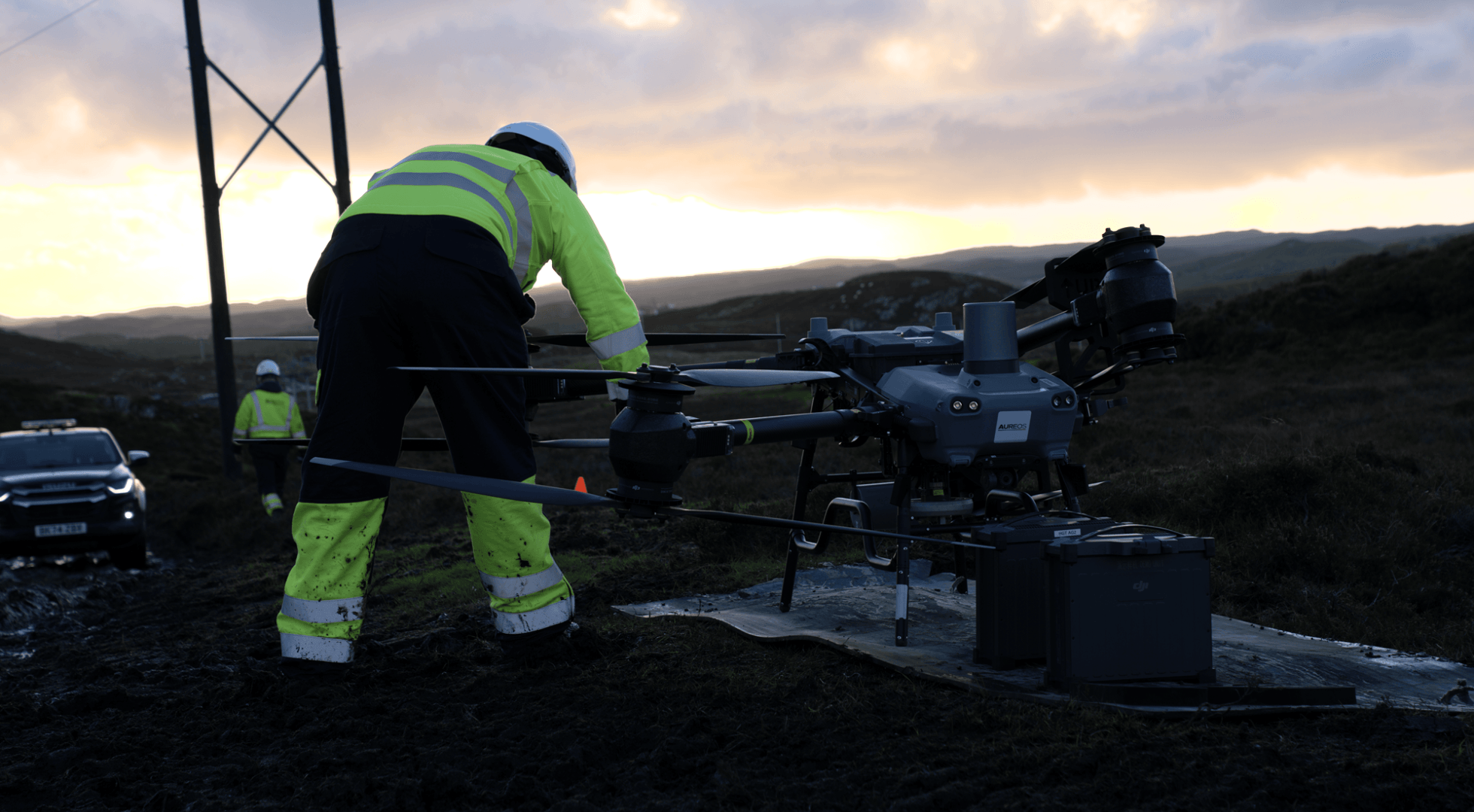 Aureos Energy Ltd has deployed the DJI FlyCart 30 to benefit the construction of a new overhead line on the Western Isles, in Scotland;