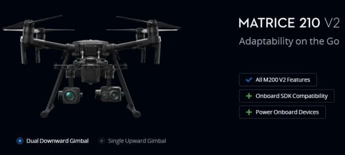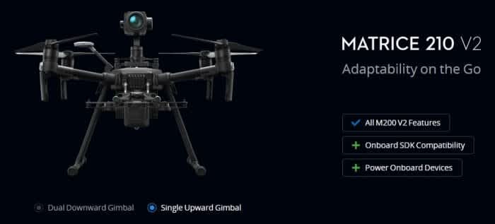 The drones in the series are the M200 V2, M210 V2 and the M210 RTK V2