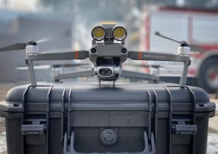 The DJI Mavic 2 Enterprise Series come with a range of accessories, including a bright spotlight.