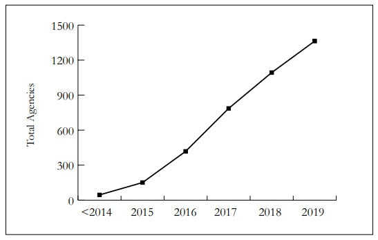 This graph shows how drone adoption has skyrocketed between 2014 and 2019, and this trend shows no sign of slowing down.