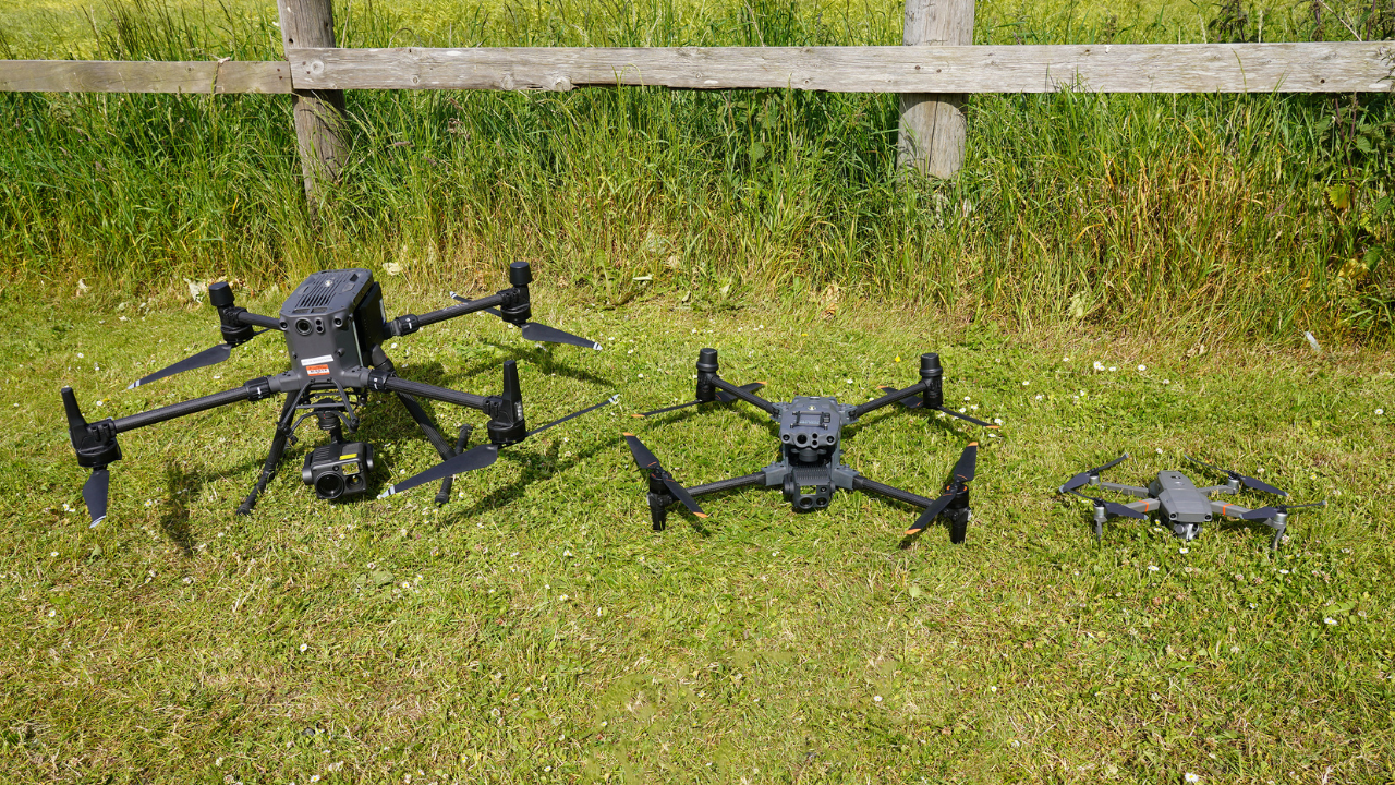 On the size front, the picture below shows the difference in footprint between the two platforms (and also the Mavic 2 Enterprise Advanced). It highlights just how much smaller the M30 Series is compared to the M300 RTK.