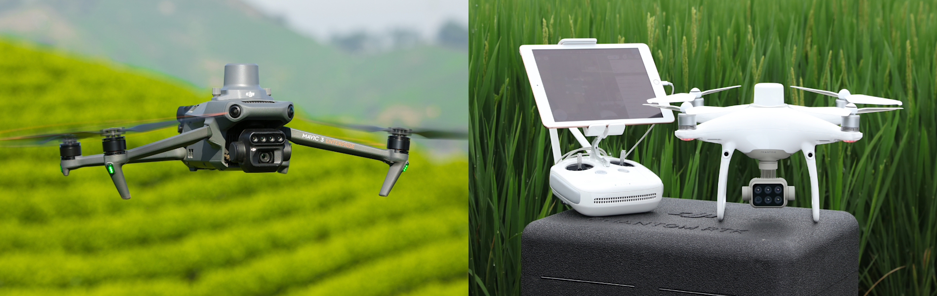 The DJI Mavic 3M and DJI Phantom 4 Multispectral are compatible with DJI Terra to help with agricultural mapping tasks.