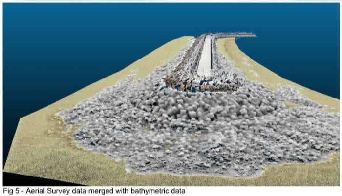 Once merged, they show the full extent of the breakwater above and below water and will be used as a baseline for future monitoring purposes.