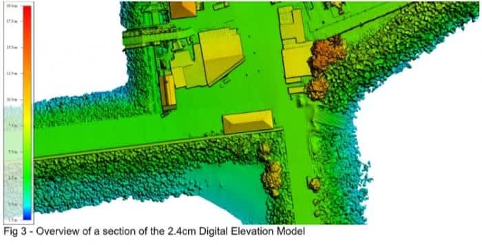 This resulted in extremely highly-accurate flight positions (2-3cm). A number of ground control points were added to the processing to improve the overall accuracy.