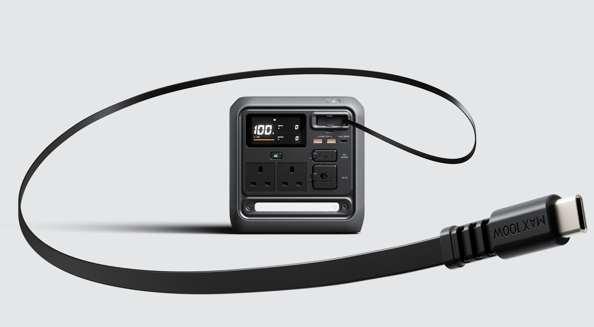 The DJI Power 1000 Mini features a built-in 100W USB-C retractable cable, allowing for convenient and cable-free charging. For emergency situations, the unit can be recharged either via the USB-C port using a separate cable or by connecting a charger directly to the integrated retractable cable, providing an additional layer of convenience and adaptability.