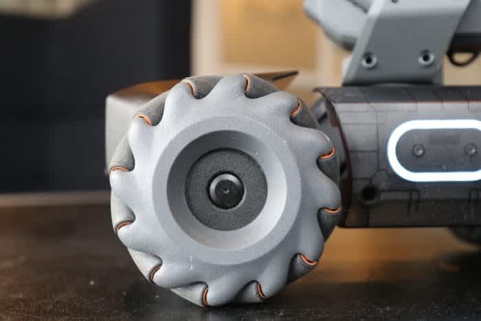 The S1 comes with four Mecanum wheels, each with 12 rollers that allow such precision movement and control, while front axes suspension allows for added versatility during operation.