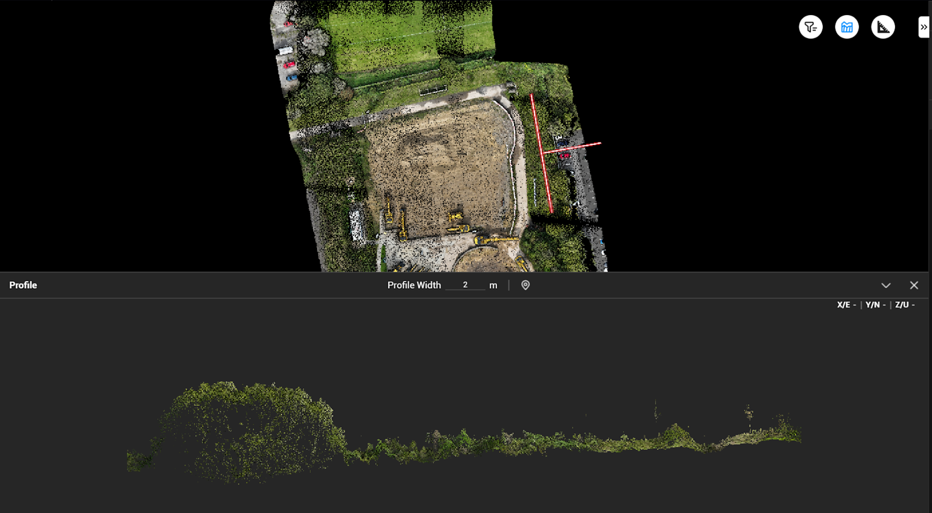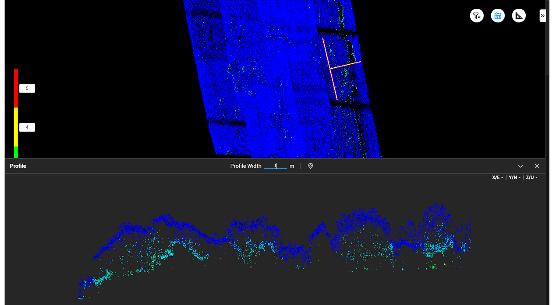 And the V3.9.2 update allows users to view cross-sections of the dataset. This is ideal for further interrogation of the dataset - particularly useful in vegetated areas allowing you to see into the canopy.