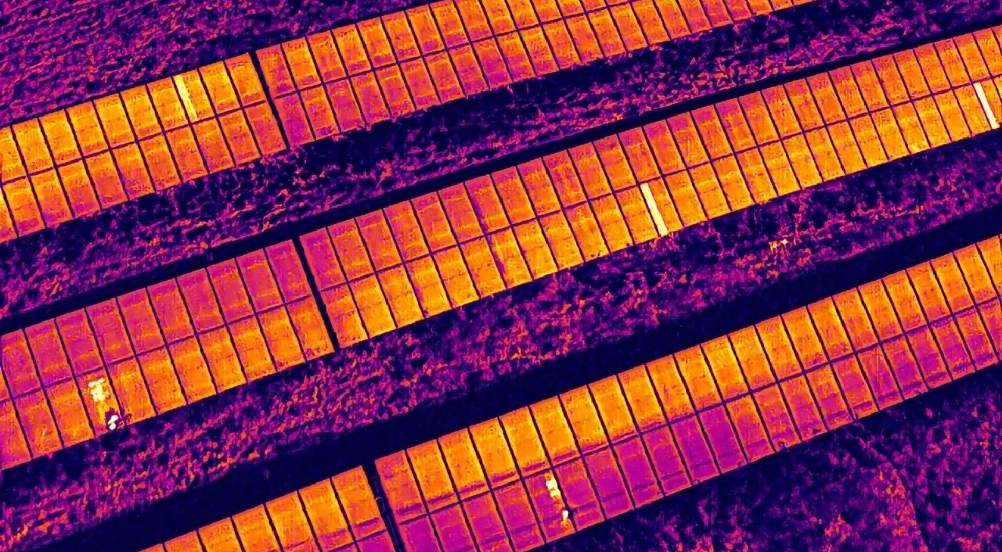 Thermal inspection datasets provide clear insights into panel performance, with brighter orange highlights marking potential defects. Thermal data can help highlight issues not visible with the naked eye.