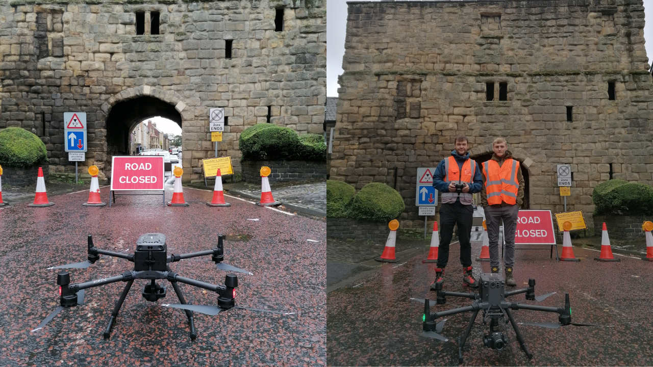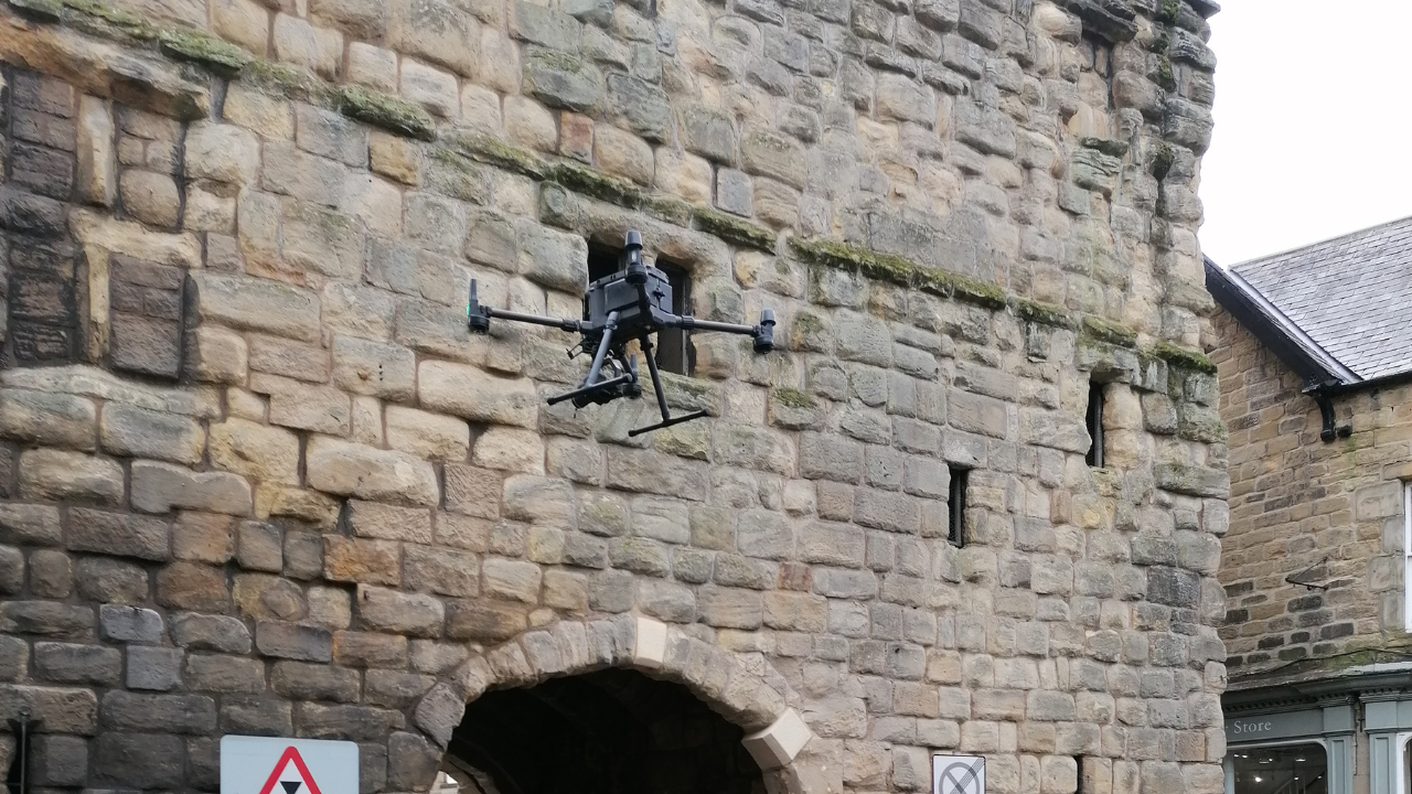 Step 1 - Permission: The team obtained the necessary permissions to fly in Alnwick town centre. This included closing the tower to traffic. Incidentally, the speed of the drone survey enabled the road to be reopened quicker than it would have been by conducting a survey using more traditional methods.