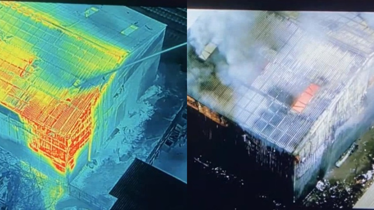 Drone data is versatile. For instance, this image shows how fire crews fought a blaze using side-by-side thermal and visual data...