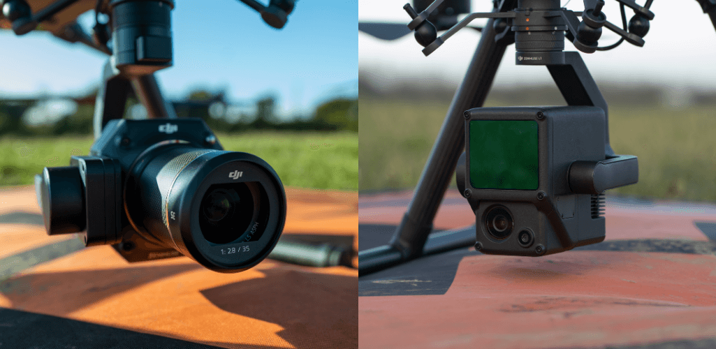 For mapping, it can be integrated with the P1 45MP full-frame photogrammetry camera, or the L1 LiDAR sensor - both pictured below - or the H20T camera can be deployed for thermal/visual drone mapping missions.