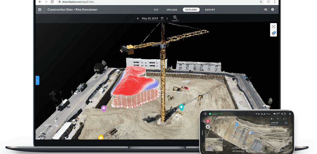 Its key features include real-time mapping, autonomous flights and a 360° virtual walkthrough mode. DroneDeploy is also compatible with an ecosystem of third-party apps.