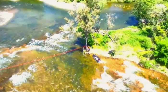 This image, captured by drone, shows a real-life rescue mission, after a driver drove through some closed road signs and flooded his vehicle.