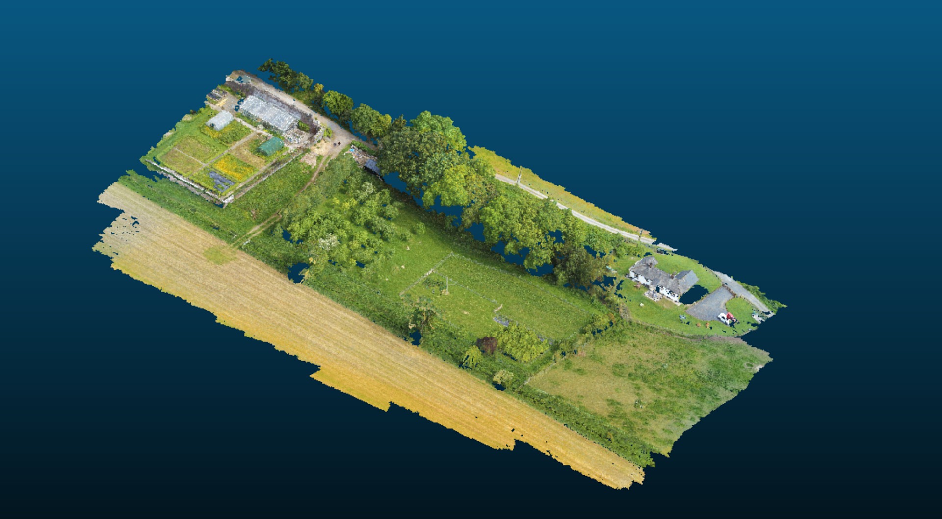 “So we have decided to introduce them as part of our courses to help students feel comfortable around them and understand how to maximise their capabilities within the industry and properly analyse the data they collect. For example, the image below shows a point cloud of our walled garden and orchard.