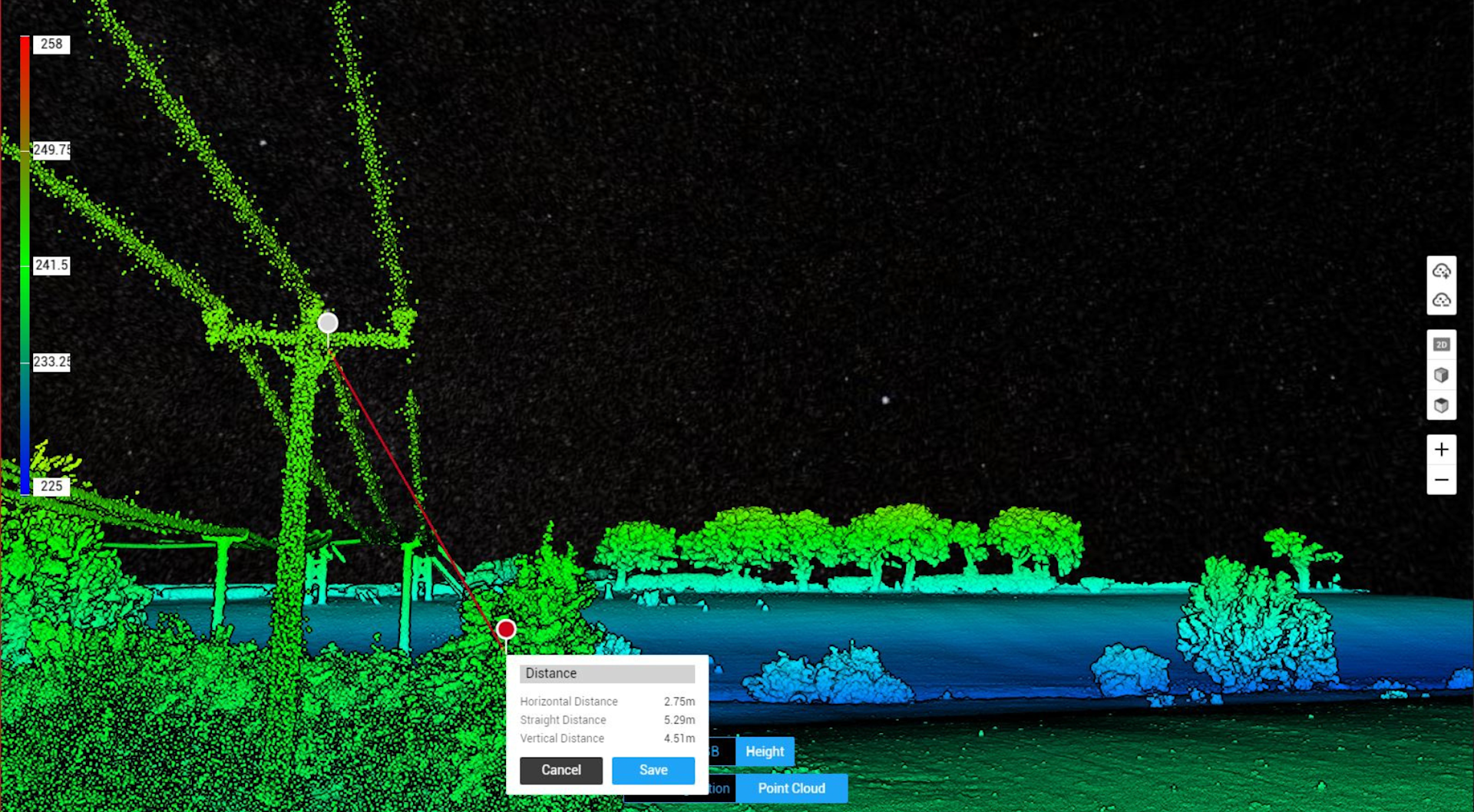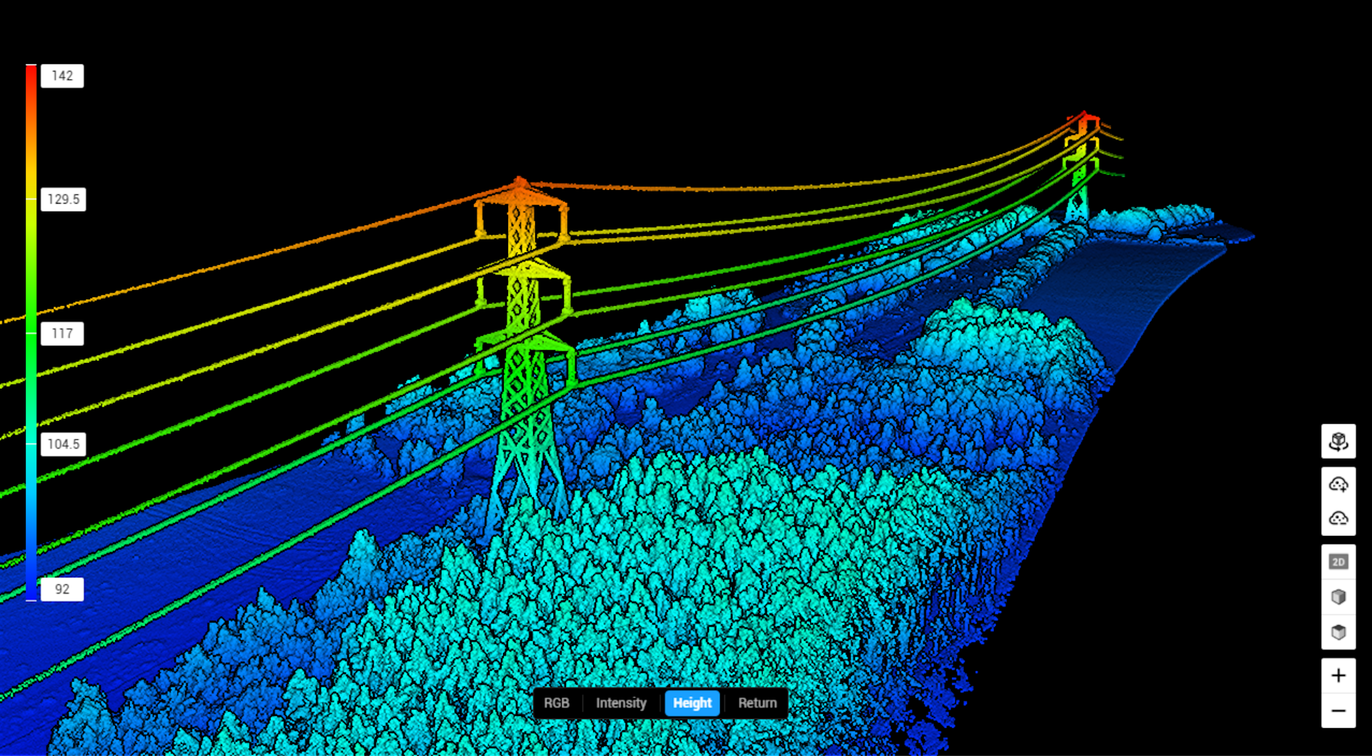 LiDAR: Map cable sag and measure clearance over roads and vegetation.