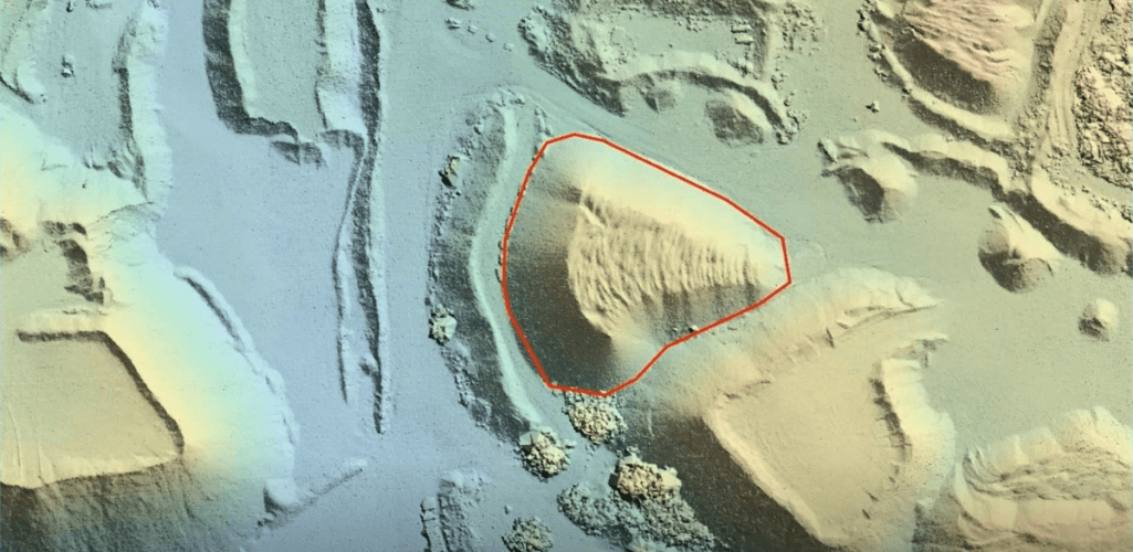 Taking the stockpile highlighted above, the first step is to draw around its boundary (left image).
