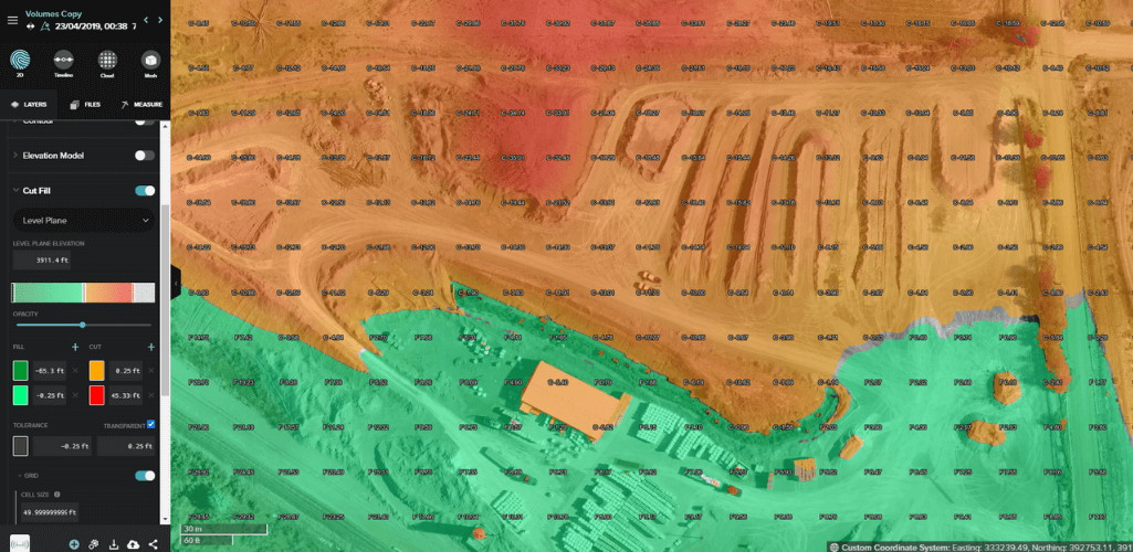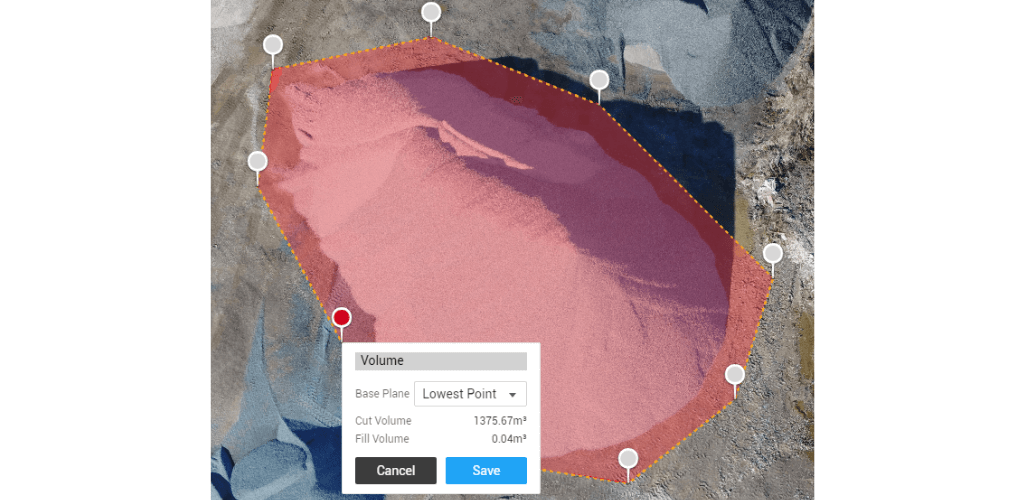 Stockpiles aren't always a nice simple shape or positioned on flat ground, so drone processing software enables users to compensate for that.