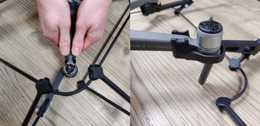 Previously, the connectors were made from small plastic flanges which clipped to the drone’s motors.