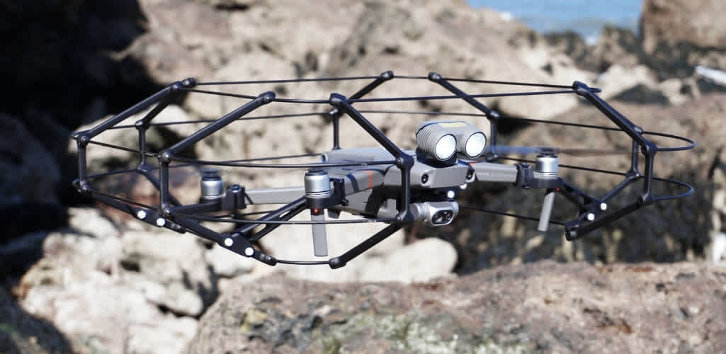 The structure - made from carbon fibre, aluminum, and nylon - addresses significant demand for a cost-effective, well-designed, commercial-quality cage for the popular and powerful DJI Mavic 2 drone series.