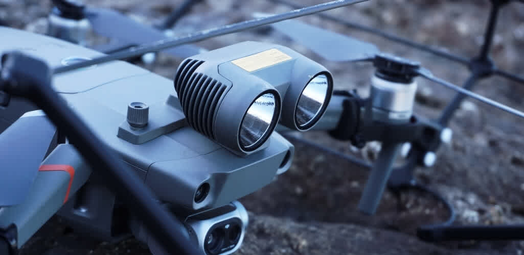 The cage is also big enough to accommodate the Mavic 2 Enterprise Series drones when they are fitted with their modular accessories, namely the bright spotlight (pictured below), loud speaker, and beacon.