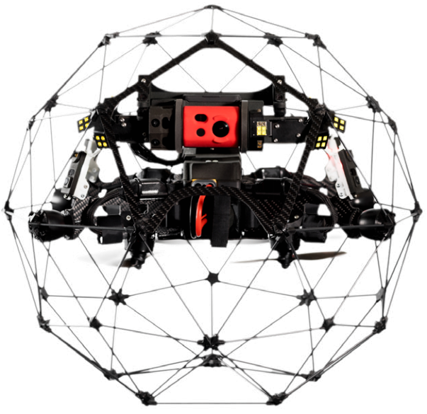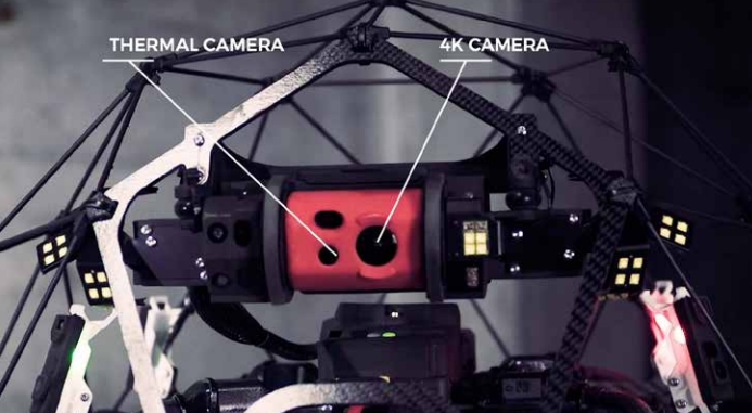 The thermal and 4K cameras on the Flyability Elios 2. Picture from Flyability