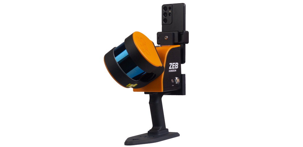 The mobile device attachment mounts onto the ZEB Horizon, which is a powerful mobile LiDAR scanner. The key features of the ZEB Horizon include:
