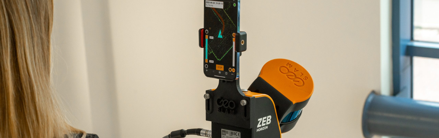 Walking and scanning with the ZEB Horizon RT generates a preview of your point cloud, ensuring complete coverage of a mapped area. It is compatible with most mobile devices which attach to the back of the ZEB Horizon via a provided phone mount holder.