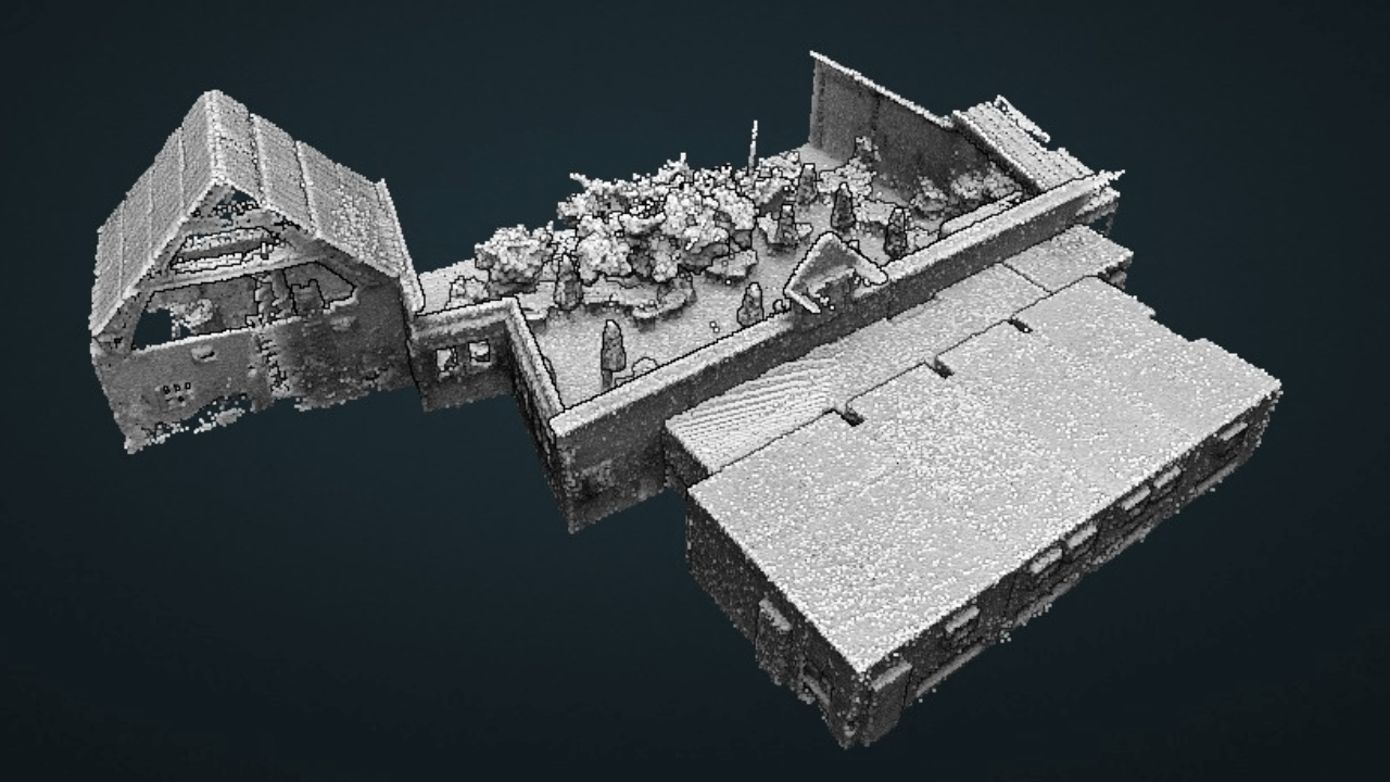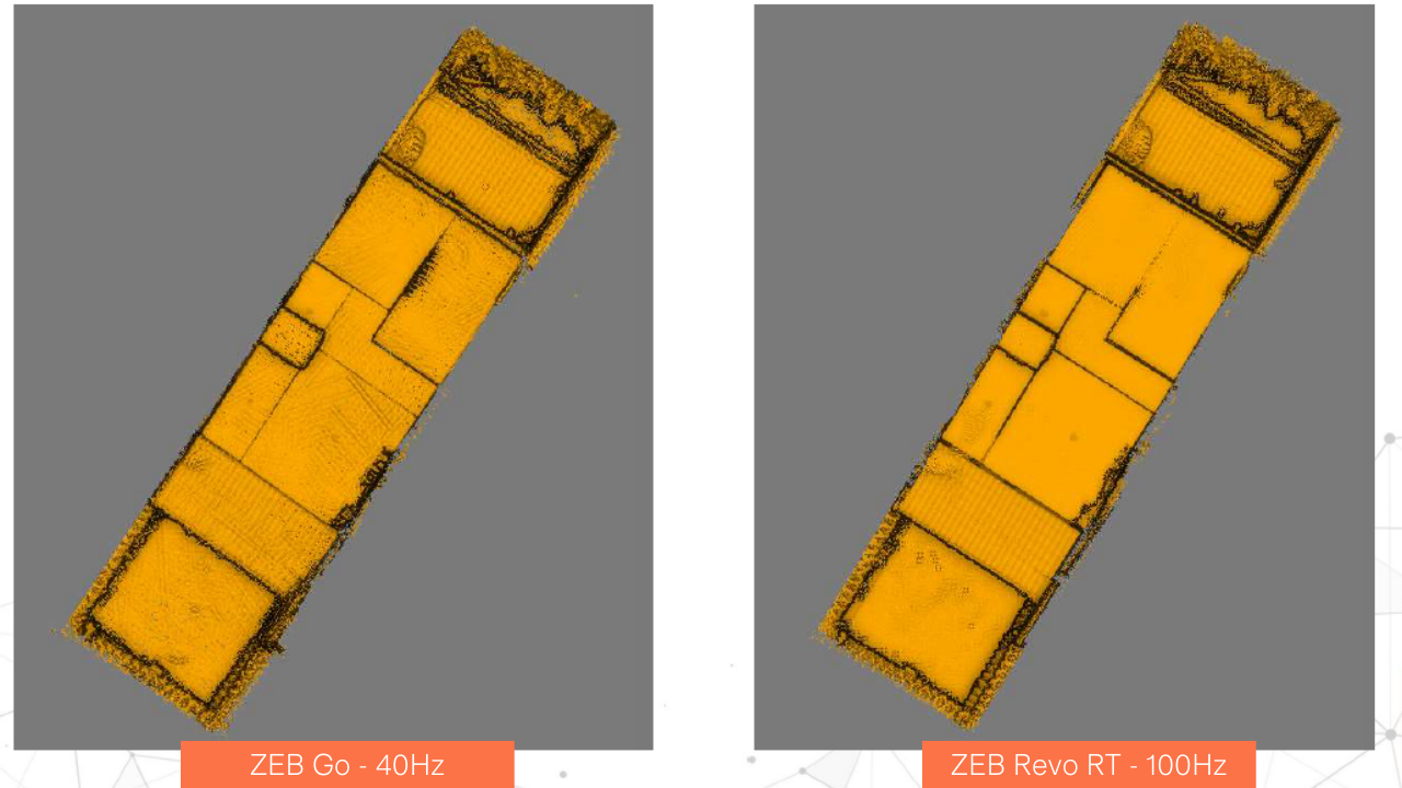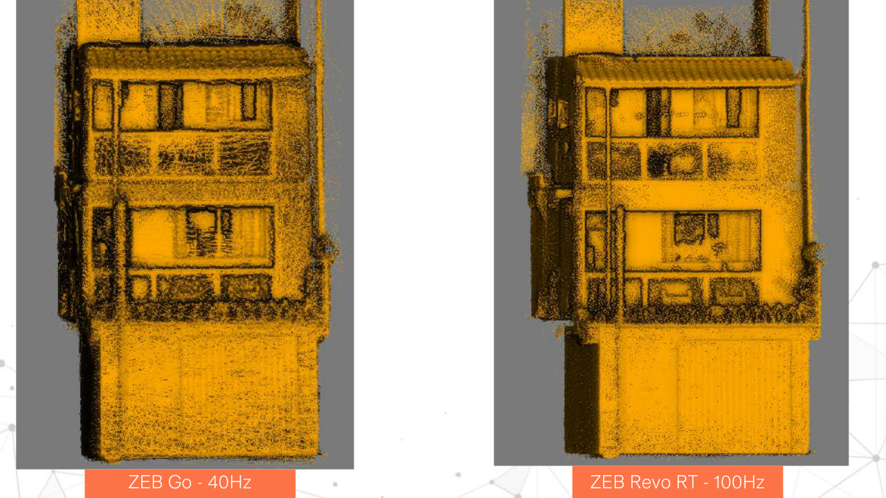 The ZEB Revo RT does share some specific data-capture qualities with the ZEB Go, such as the 30m maximum range and the 43,000 scanner points per second. However, the ZEB Revo RT has a higher frequency than the ZEB Go (100Hz vs 40Hz) which helps to create a more dense point cloud - as these two images show.