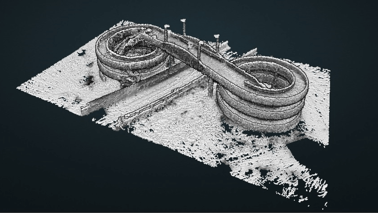 For instance, the ZEB Go was used to create this point cloud of a spiral bridge. The asset was captured in 10 minutes and the data processed in 15 minutes.