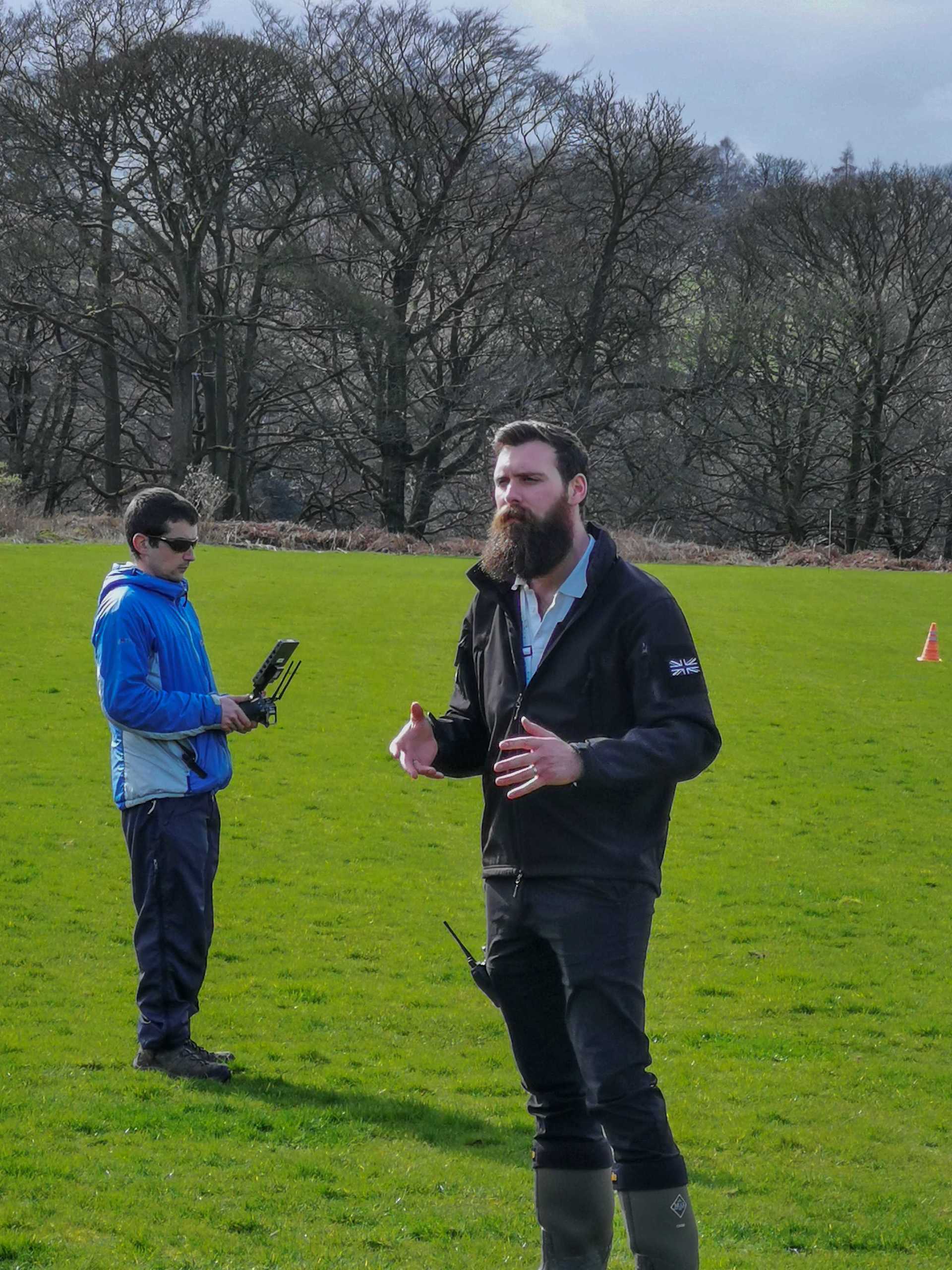 Heliguy's Head of Training, Ben Shirley, with colleague Tom Anderson during a drone training session with Network Rail.