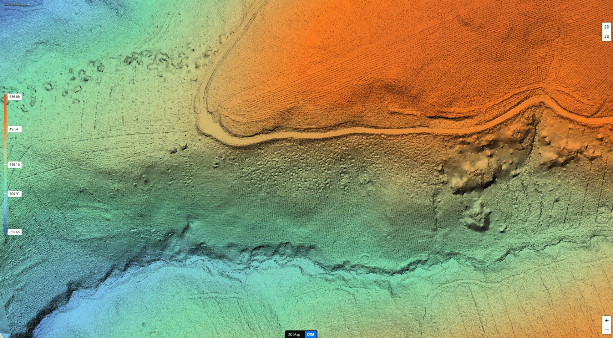 The Zenmuse L3–M400’s Real-Time Terrain Follow proved invaluable during the Kidland Forest survey. Using onboard LiDAR data, the drone automatically maintains a constant height above the ground, even in steep or uneven terrain.