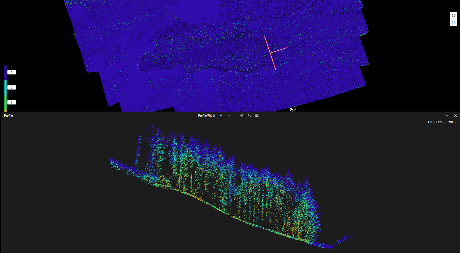 Why this matters: The ability to capture both canopy and ground returns is critical for tree-height modelling, DTM generation, and carbon stock analysis.