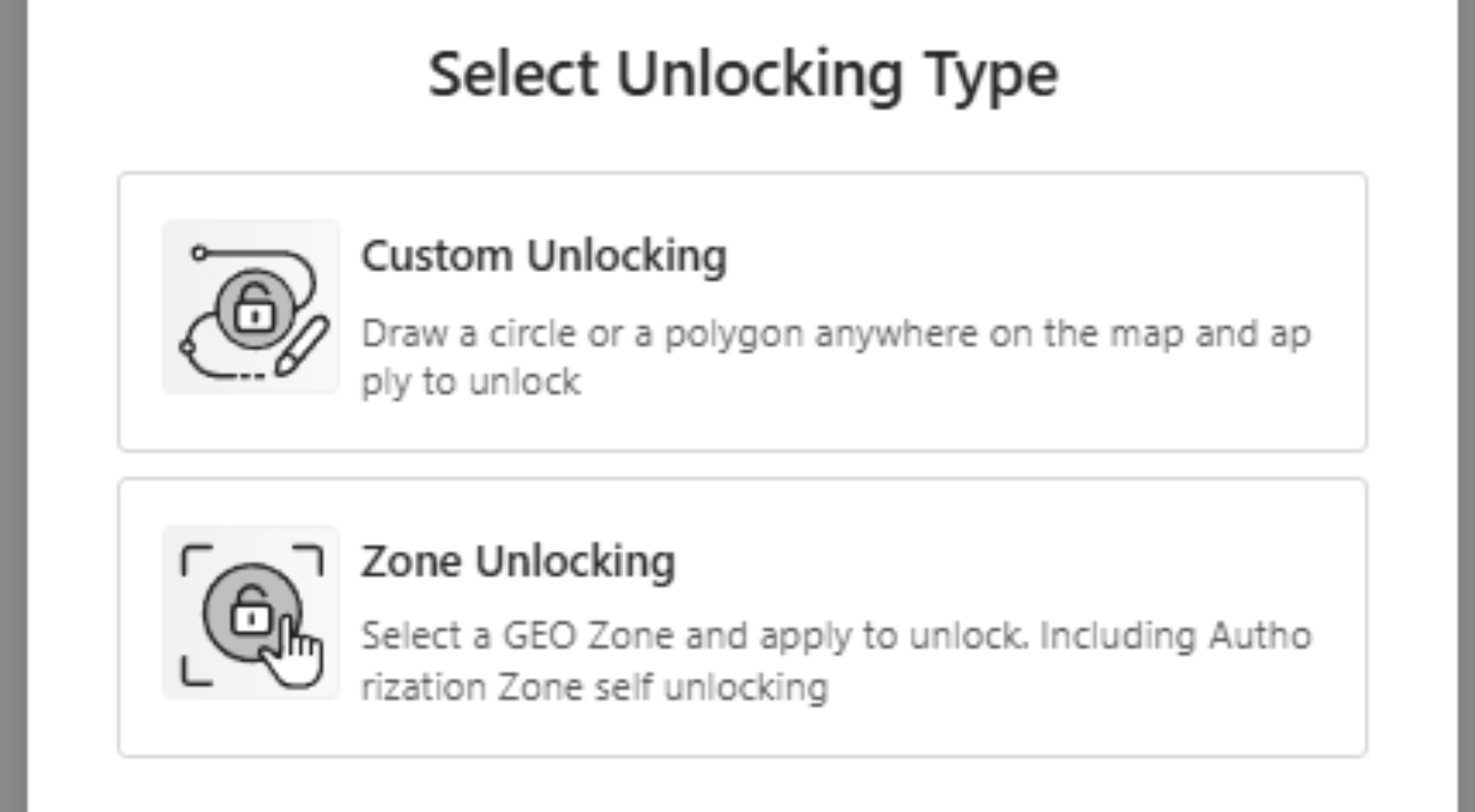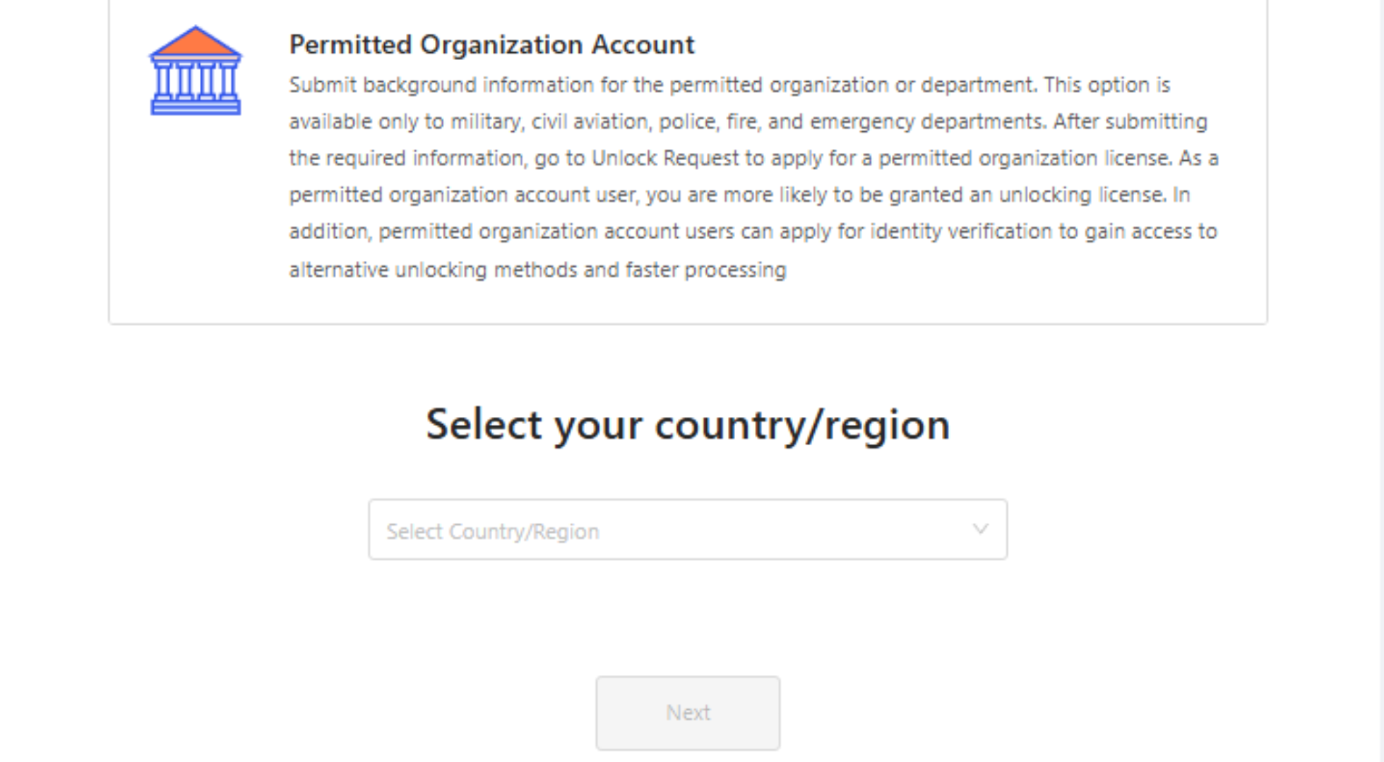 Verified government users will see additional unlocking options — select the one that fits your operation.