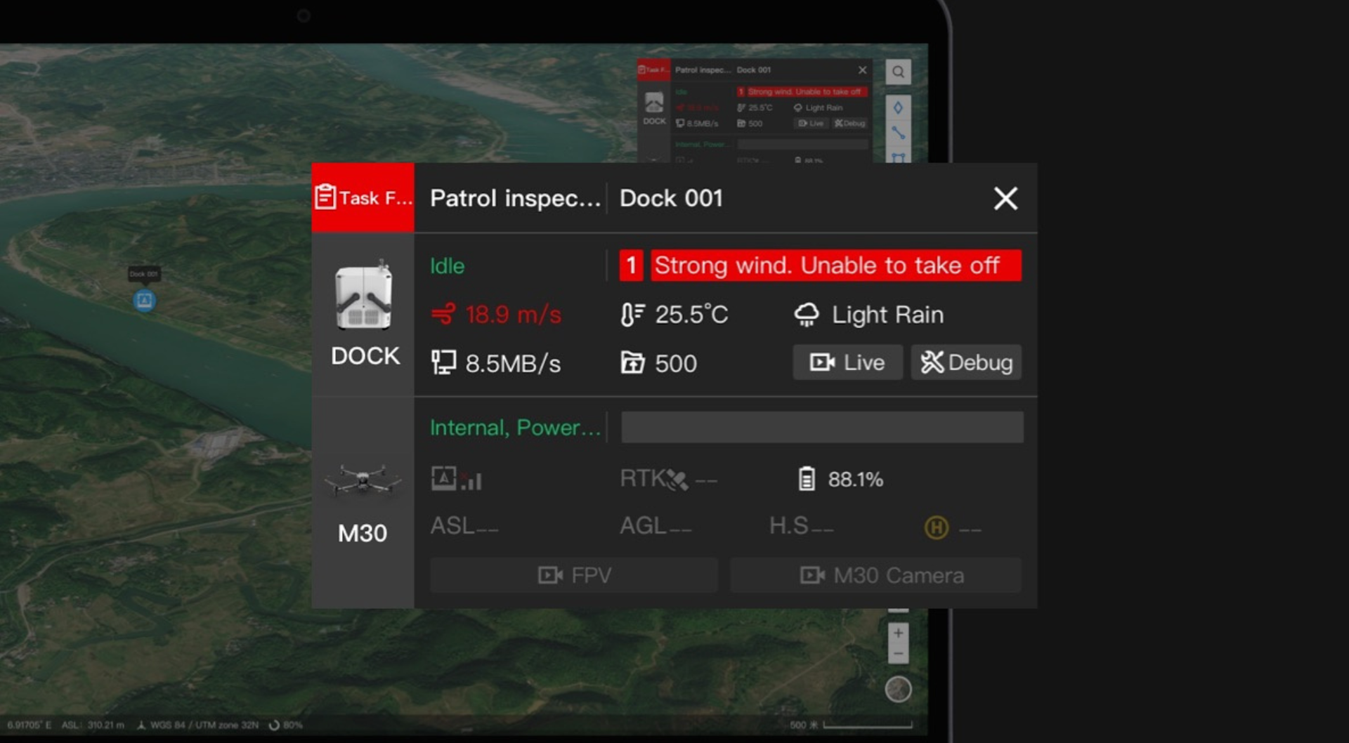 DJI FlightHub 2 can also be used to remotely check the status of the DJI Dock and perform debugging whenever needed - ensuring drone operations are maintained without constant maintenance visits.